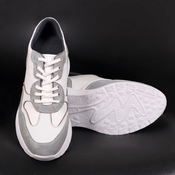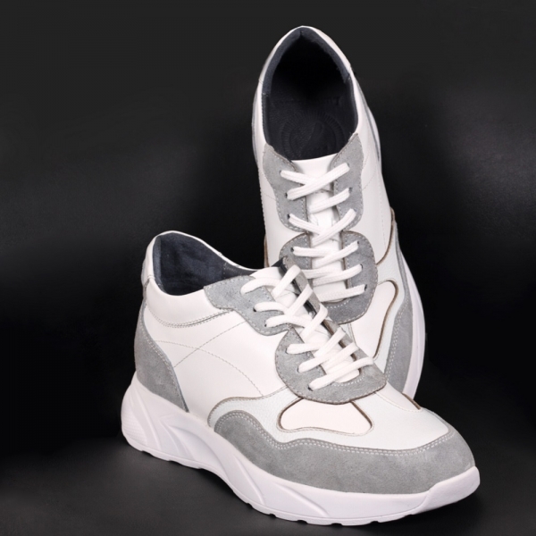 کتونی چرم مردانه فوکو سفید با 7 سانت افزایش قد